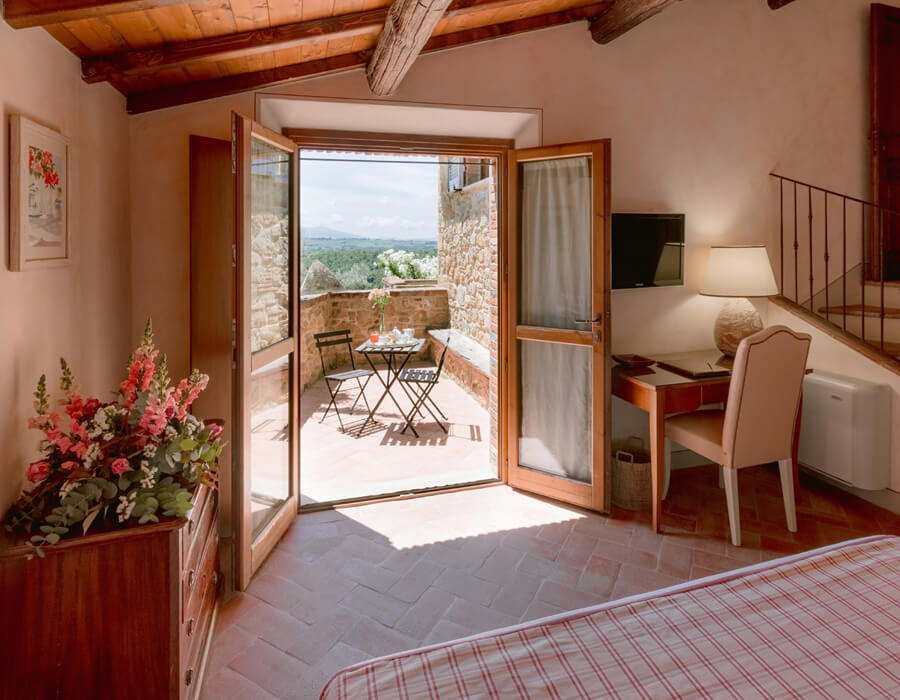 The perfect option for those looking for some space and more privacy. The Deluxe rooms also offer a breathtaking view of Pienza.