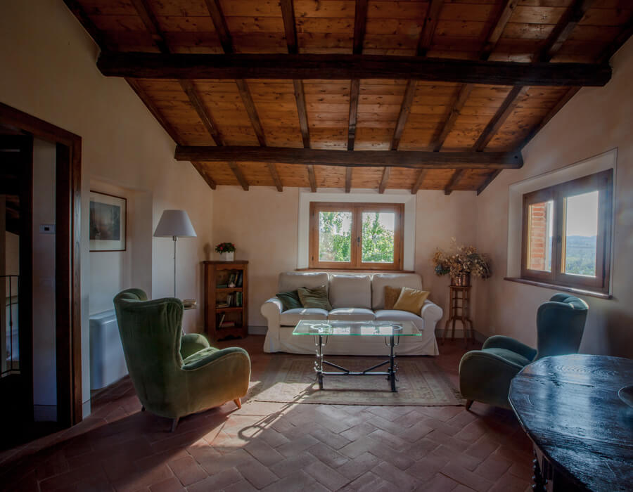 The rooms, furnished with sober elegance, take their name from the olive varieties that the organic farm Sant’Ambrogio cultivates. All the accommodations show off structural elements typical of Tuscan architecture, declined in slightly different ways. The large windows of the rooms overlook the woods and the expanses of the Reserve and fill the rooms with natural light.